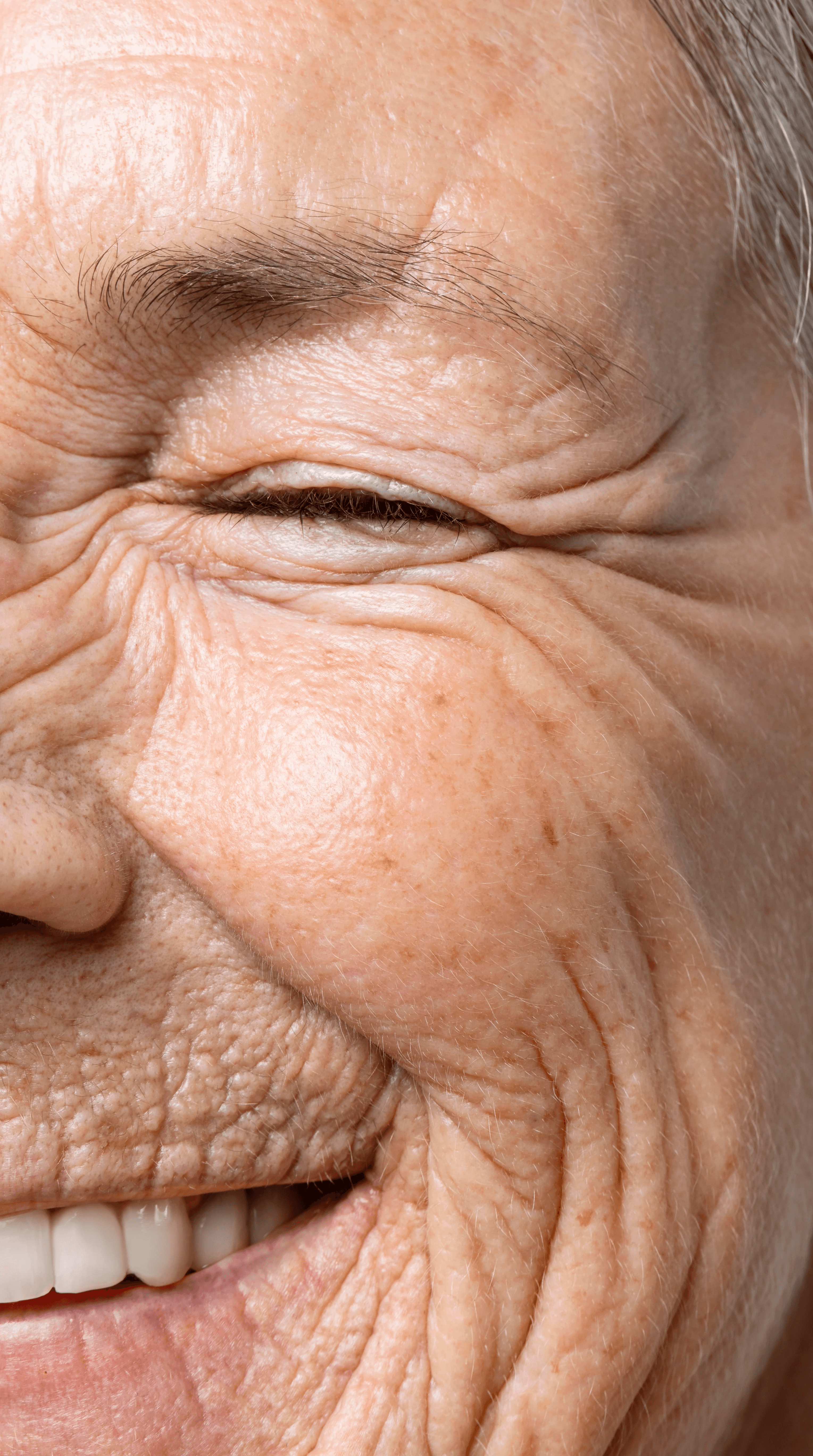 Een doffe huid, rimpels, fijne lijntjes of een verslapte huidstructuur zijn tekenen van huidveroudering.
